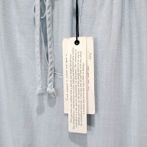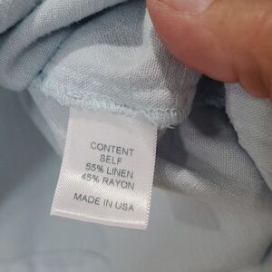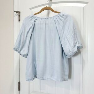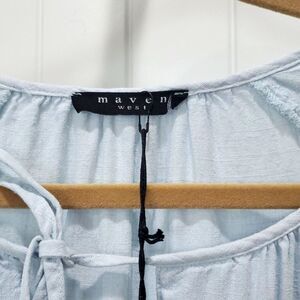 NWT Maven West Sz Lg Womens Blue Crop Pouf Sleeve Linen Boho Blouse