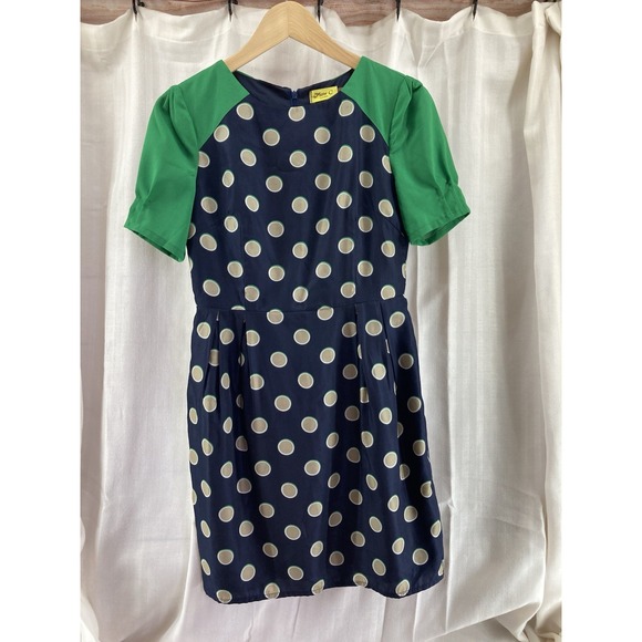 NWT Max C London Dress Women's Size 8 Blue Green Polka Dot Retro Style Zipper