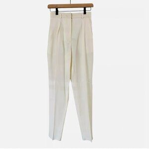 NWT Max Mara Size 2 Briose White Ivory Wool Trousers Belt Tapered High Rise $545