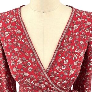 NWT Max Studio Balloon Sleeve Red Floral Wrap Dress Size S