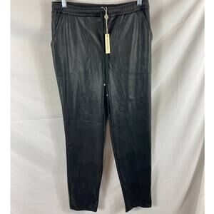 NWT Max Studio Black Faux Leather Pull On Drawstring Waist Pants size medium