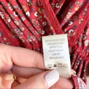 NWT Max Studio Boho Red Floral Bubble Sleeve Peasant Dress