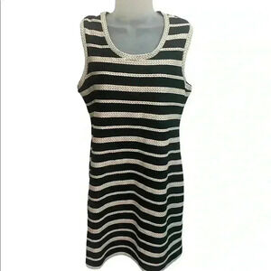 Adorable and perfect for this summer. Black and cream striped. Textured braided detail throughout. Sleeveless. Gives summery nautical vibes.