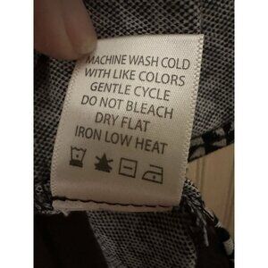 The product is a NWT Max Studio career knit sleeveless top shell in black and beige colors, designed for casual occasions. Made from a lightweight and breathable knit fabric, this classic fit top is perfect for wearing under a blazer or jacket. The geometric pattern and basic style make it versatile for various outfits, while the size L and regular size type ensure a comfortable fit for women.