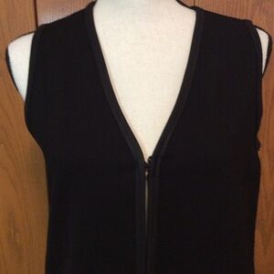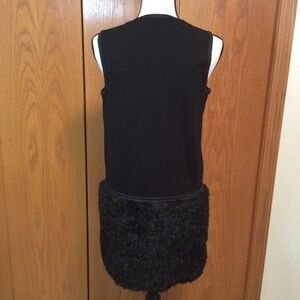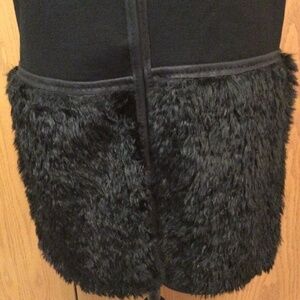 NWT Black curly faux fur sleeveless V-neck vest with a 3 hook & eye front closure. Fabric is 70% rayon, 27% nylon and 3% spandex. Approximate measurements laying flat: Bust: 36" and length 32".