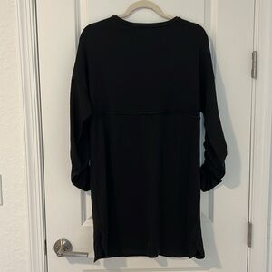 Super soft fabric, comfortable, versatile little black dress. Dress it up with jewelry and heels or keep it casual. Sleeves can be shortened with ruching.
