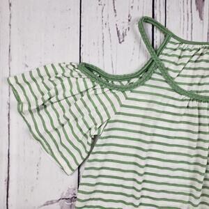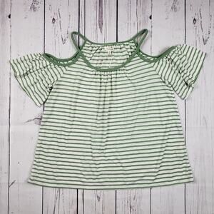NWT Max Studio Green & White Striped Cold Shoulder Bell Sleeve Top Size XS