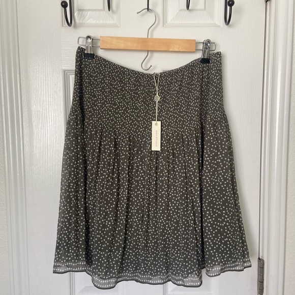 NWT Max Studio Green and White Polka Dot Gathered waist Skirt - Medium