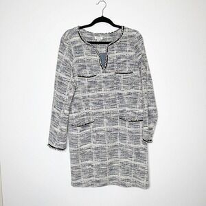 NWT Max Studio Long Sleeve Tweed Shift Dress Women's Blue White Size X Large