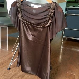 NWT Max Studio Mixed Media Top with satin bodice has a sheer inlay that creates a softly draped cowl neck and flutter sleeves. Pair with jeans for a casual, 'girls night out', or take it up a few notches with a sequined skirt for a sexy, yet sophisticated, date night or holiday party look! Silky, seductive and elegant in a rich, shimmering, dark brown. Striking!