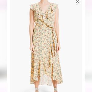 NWT Max Studio Patterned Ruffle Wrap Midi Dress
