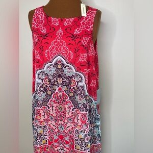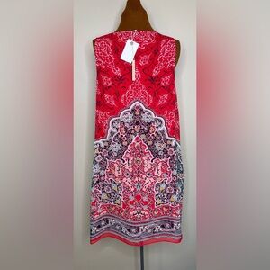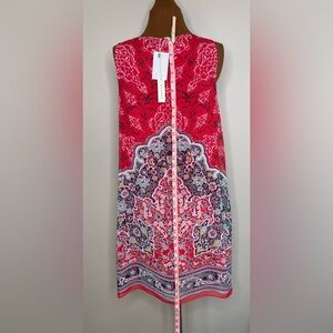 NWT Max Studio Red Scarf Print Sleeveless Shift Dress Size Medium