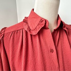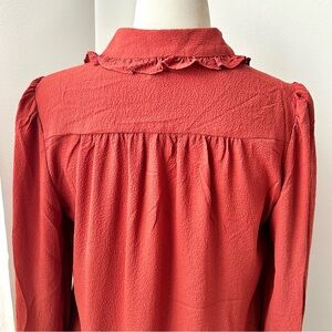 🌸NWT - Max Studio Ruffle Button Down Blouse. Rust. Size: XS
