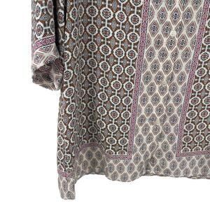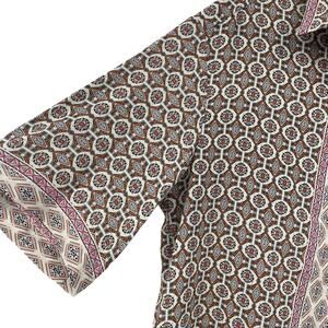 NWT Max Studio Short Sleeve Button Up Geometric Print Top Pink Orange Small