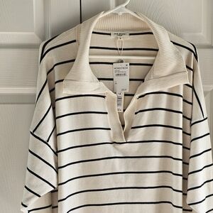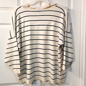 NWT Max Studio Stripe Collar Lightweight Soft Yarns Sweater Cream 1X & 2X
