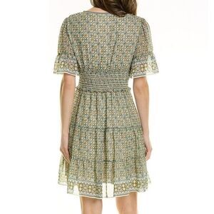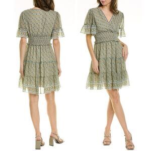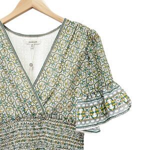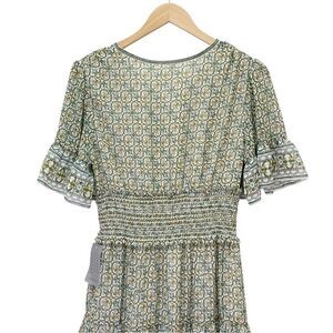NWT Max Studio Tiered A-Line Flutter Sleeve Dress Cream Green Floral Size Medium