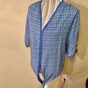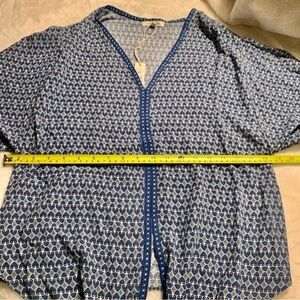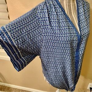 NWT Max Studio Top XS Kimono Style Top 100% Rayon Blue Shades White Short Slvs