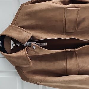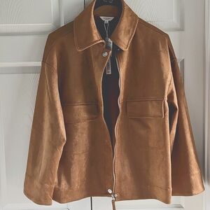 NWT Max Studio Utilatarian Zip/Button Closure Faux Suede Jacket XL Camel