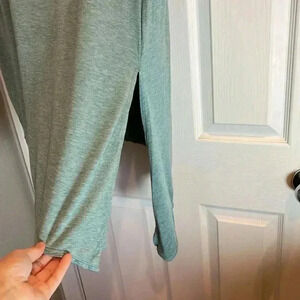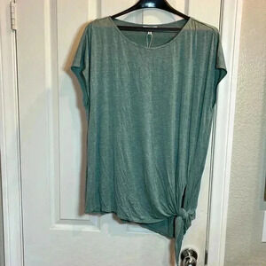 Description: Soft and stretchy cap sleeve short sleeve asymmetrical hem top. Can be worn with a tie on the side or loose for a fun lagenlook style. Scoop neck. Rayon Spandex.