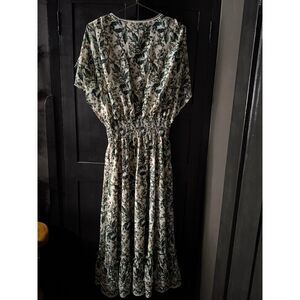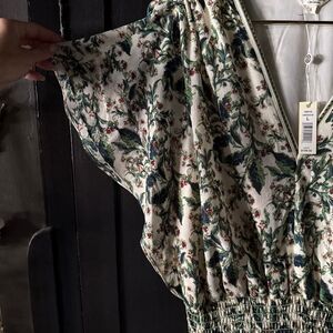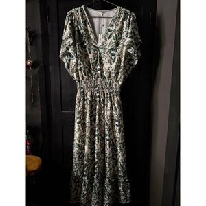 NWT Max Studio green and cream flutter sleeve floral tiered maxi dress