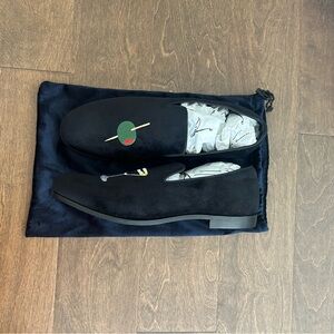 The Olive Martini Slippers from May Anthony epitomize luxury and indulgence. Crafted individually by hand, these loafers feature premium velvet material and rayon embroidery thread, capturing the essence of savoring life's finer moments.