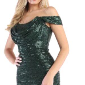 NWT May Queen MQ1914 Metallic Sequin Prom Dress Green size 8