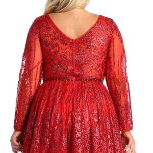 NWT May Queen RQ7920 Lace/Sheer Evening Dress Red size 12
