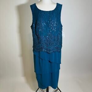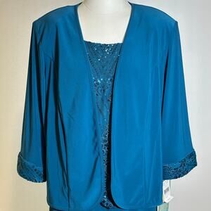 NWT Maya Brooke Teal Tiered Sequin 2 Piece Jacket Dress Set Womens Plus Size 18W