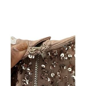 New with Tags Maya Deluxe Taupe Sequin Sleeveless Pop Over Tulle Dress