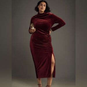 NWT! Maya Ruched Cowl-Neck Dress Wine Velvet Long-Sleeve Edition - 3X 💚