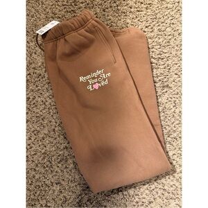 Cozy and stylish brown sweatpants featuring a heartfelt message.