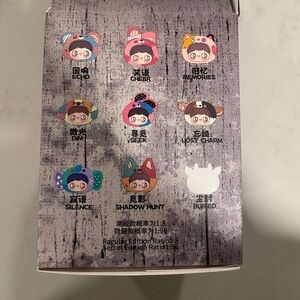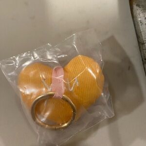 Comes with the box, packaging, card, and plush heart charm that has the key ring