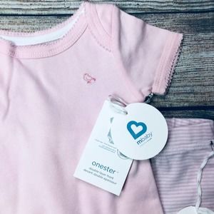 NWT Mbaby 9m Girls pant & bodysuit set; NWT size 9m convertible pants, covert from footie to footless pant + NWT 9m SS pink bodysuit + new matching light pink nylon bow headwrap, one-size