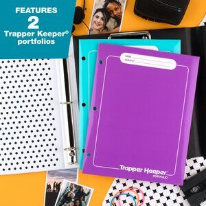 Includes 2 folders with vertical pockets that trap loose papers so they won’t fall out