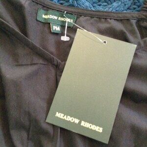 NWT Meadow Rhodes Boho P/M Tiered Peasant Maxi dress; Chic, Hippie, Bohemian, Boat Neck, Cap Sleeves, Cotton - BLACK; NO FADE, the pictures fade out on closeups. Double ties at waist; Measurements: Shoulders: 13", Pit-Pit: 16", Length: 34" from Waist. NEW
