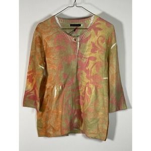 NWT Mechant Cardigan Peplum Sweater Abstract Fall Colors Rust Green Sz S & L