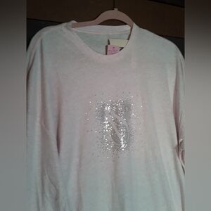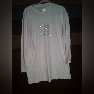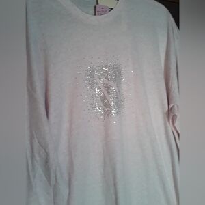 NWT medium Victoria's Secrets beautiful heathered pink long sleeve nightshirt. it has the Victoria's Secret logo on front in silver gems. This night shirt is gorgeous. If you see the measurements in the pictures you'll notice that it is oversized so that you can be comfy cozy when you're snuggling with your guy.