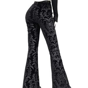 NWT Medium Black Velour Damask Brocade Goth Cthulhu Flares