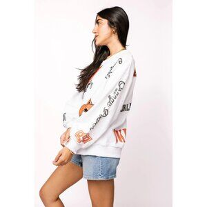 Make your way to the big game in this Oklahoma State Cowboys Womens White Bling All Over Icon Crew Sweatshirt! This Cowboys Long Sleeve Sweatshirt features a applique team graphics scattered. Stay warm and comfortable with this Women's OSU Cowboys Crew Sweatshirt.