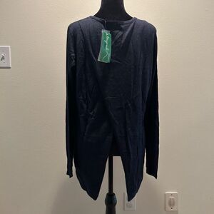 NWT Medium Zuda Sweater Dark Navy Stretchable Slit Open Back
