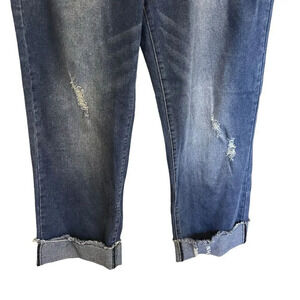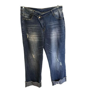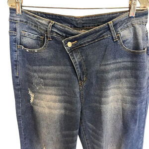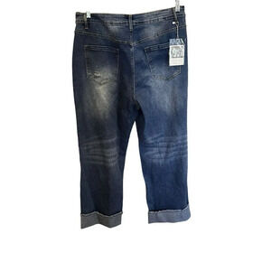 NWT Mekool Women Jeans Cuffed, Hemline Side Zip Up Button School stretch 2XL