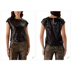 NWT Melissa Paige Black Sequin Cap Sleeve Elastic Waist Blouse