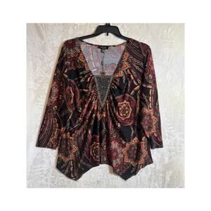NWT Melissa Paige Medallion Hanky Hem Top 1X Flowy Festival