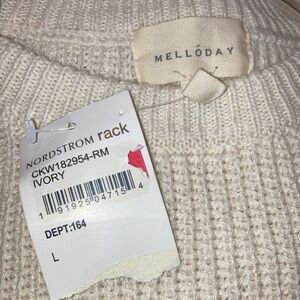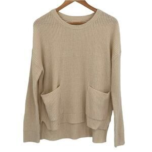 NWT Melloday Women's Size L Ivory Patch Pocket Knit Wool Blend Sweater New