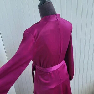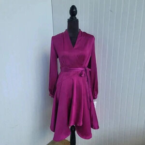 NWT Melonie T Plus Long Sleeve High-Low Fit Flare Dress Satin Mulberry Petite 6P