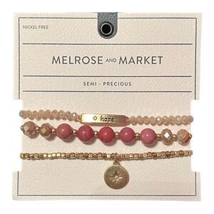 NWT Melrose And Marker Set Of 3 Semi-Precious Pink And Gold Stretch Bracelets