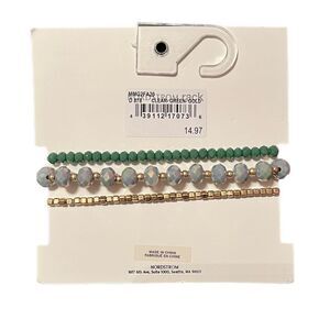 NWT Melrose And Market Set Of 3 Semi-Precious Labradorite Green Gold Bracelets
