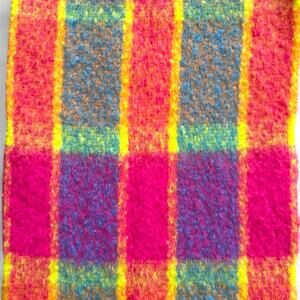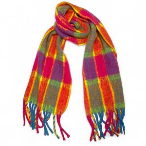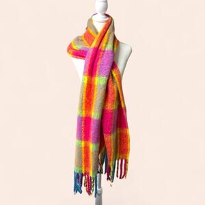 NWT Melrose and Market Chunky Plaid Scarf Fringe Bright Pink Orange Colorful