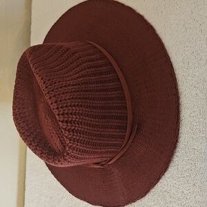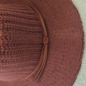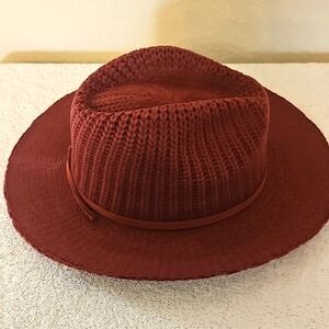Chic Rust Fedora/Panama hat with a sleek design. Perfect for any occasion. Adds a pop of color to your outfit. Knit construction lends chic construction to this Panama Hat that is ideal for any ensemble. Two Tone. Rust Hills