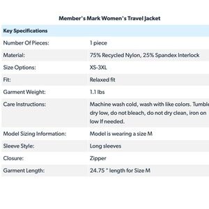 NWT Member's Mark Black Women's Travel Jacket (Size S)